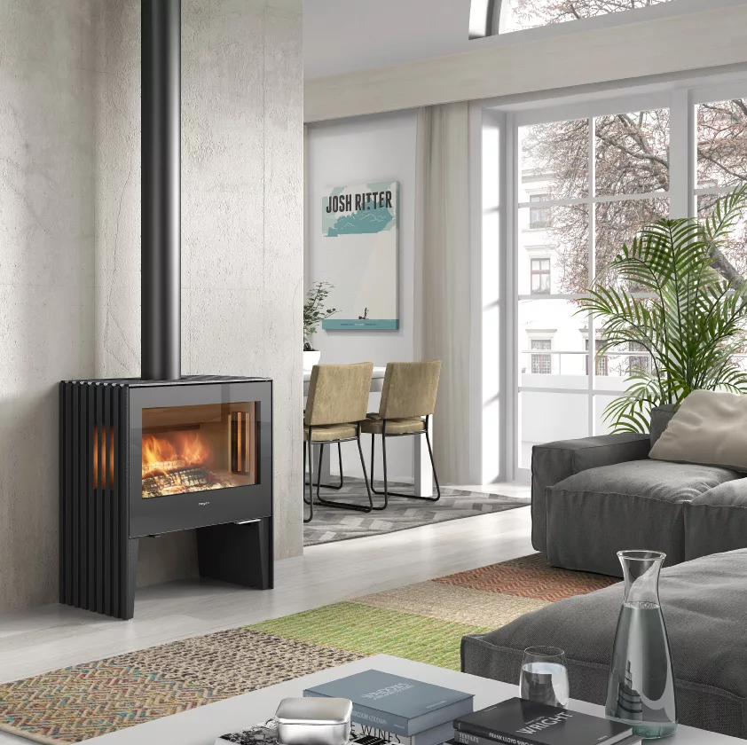 The beautifully finished Glance wide has a ribbed cast iron external body; this destinctive features is also practical as it increases the surface area to enable good heat heat distribution. The Glance wide stove is an undisputed, contemporary focal point in any room. This combined with ceramic glass on the sides, as well as at the front of this stove, it is possible to see flames dancing through the cast iron, side panels.