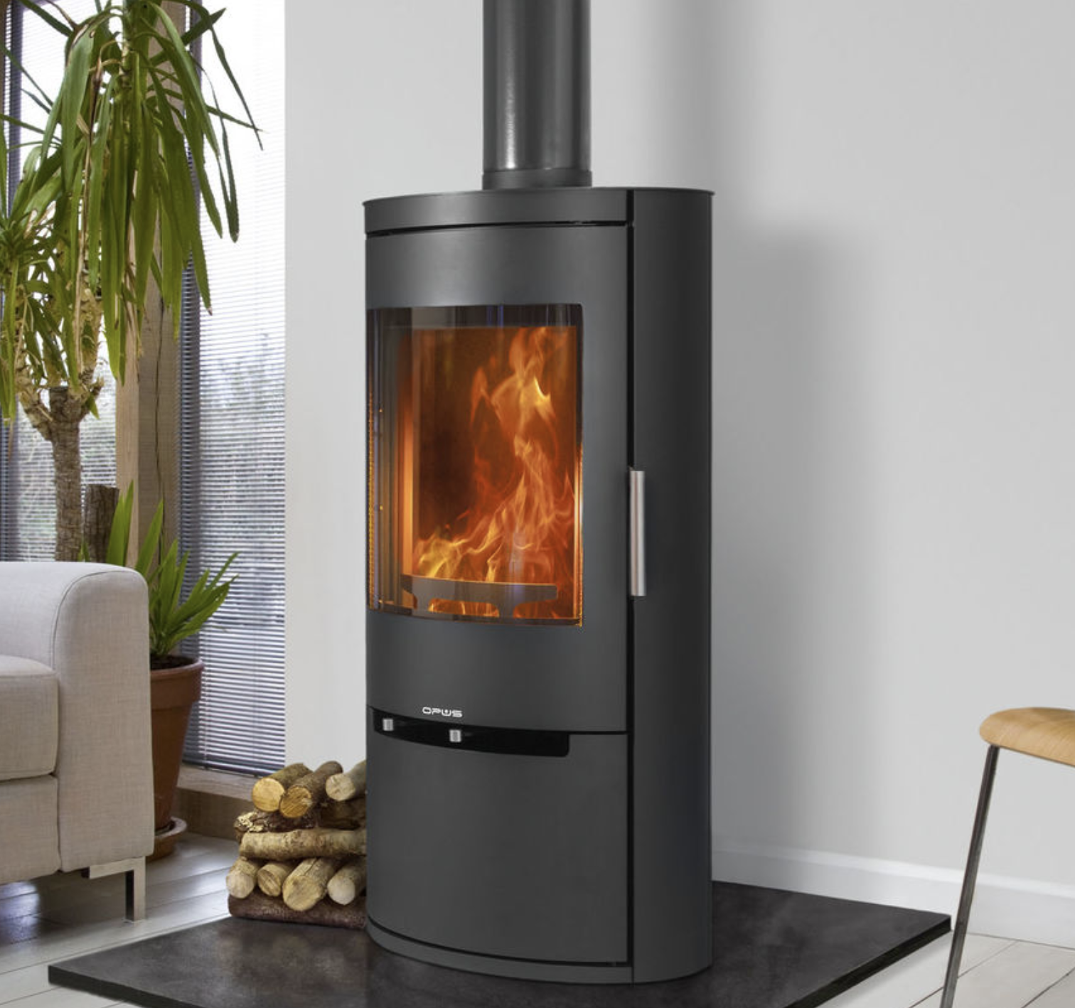 The Opus Melody is an eye catching contemporary stove with it’s large curved window which gives you a fantastic view of the fire within.
